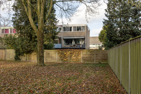 De achtertuin is onderhoudsarm ingericht en voorzien van een nieuwe overkapping met berging: perfect voor fietsen, opslag en een heerlijke loungeplek. Via de zijpoort staat de tuin in verbinding met de oprit en garage.